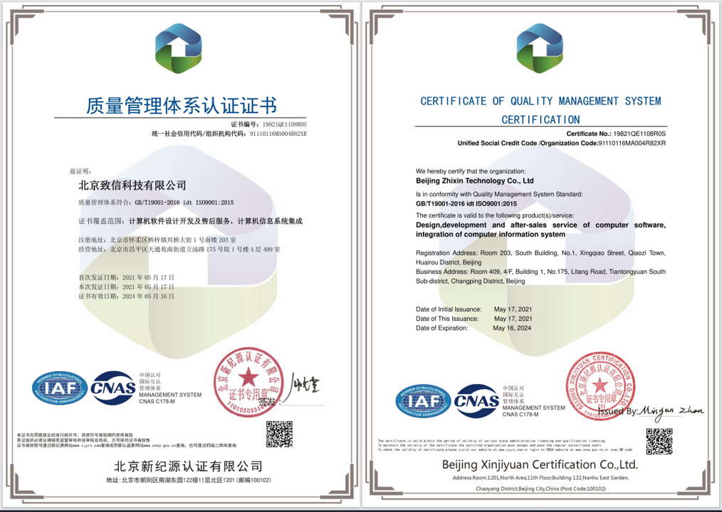 质量管理体系认证证书