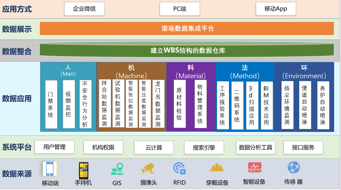 梁厂信息化管理系统为包含采用智能设备配合施工工序管理,集成信息化系统进行工程管理,可视化监控和现场安全质量管理等,涵盖梁场现场控制要点,有机串联施工生产管理任务,打造梁厂信息化管理系统,有效地实现标准化的管理,大大提高监管力度,达到信息和管理的同步,为提高工程生产质量提供有效的保障。