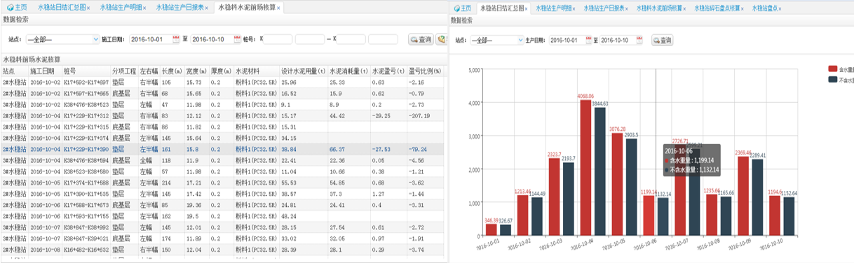 物料核算管理主要包括水稳料核算、混凝土核算、沥青核算、分项工程管理、混合料核算、原材料核算、库存核算等功能。